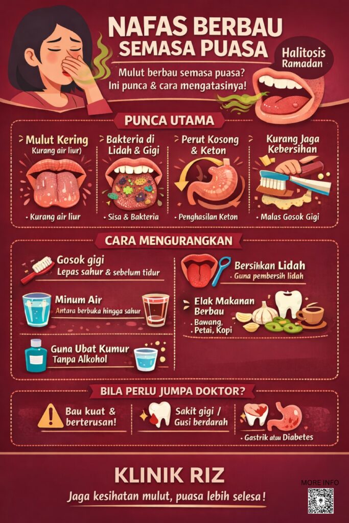 Posted inKESIHATAN SERVIS/PERKHIDMATAN UMUM MULUT BERBAU KETIKA PUASA Posted by ADMIN SIHAT 26/02/2026No Comments ADMIN SIHAT Admin merupakan sa-orang yang kachak dan sihat. View All Posts Post navigation Previous Post 🤰 KEHAMILAN DAN PUASA: BOLEH ATAU TIDAK?Next PostNEBULISER KETIKA PUASA,BATAL ATAU TIDAK?