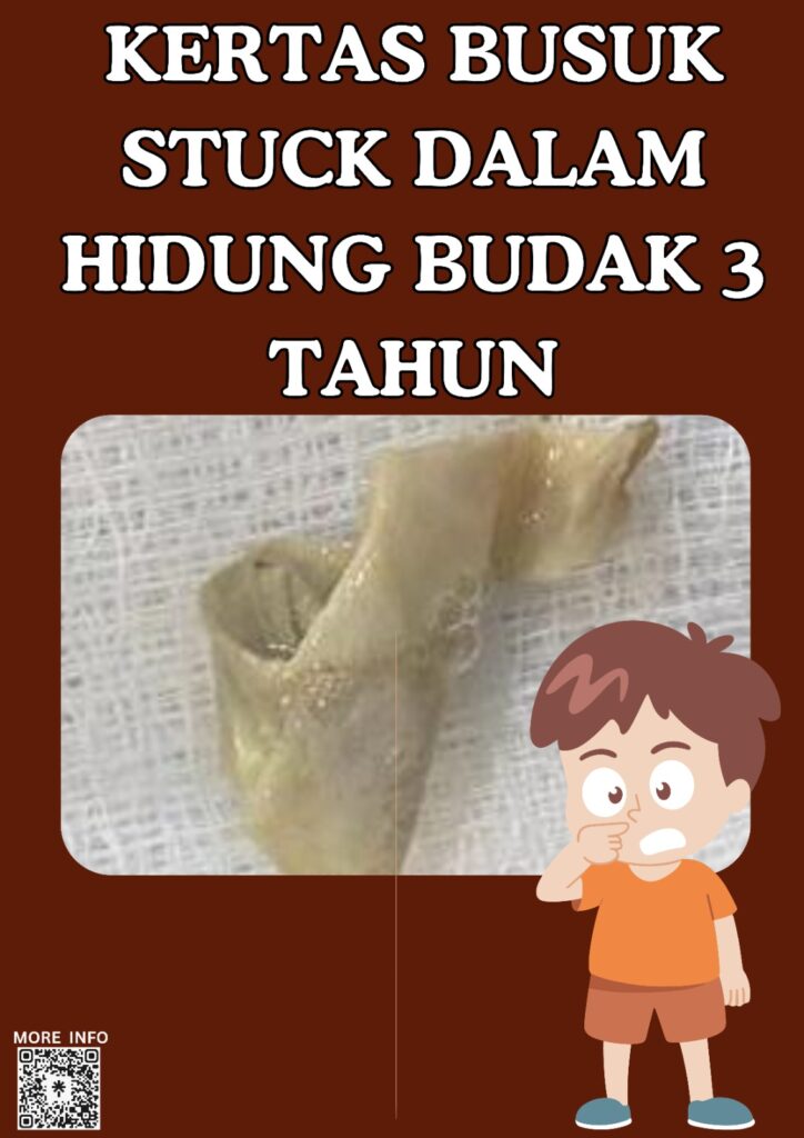 Seorang pesakit kecil, umur baru 3 tahun, datang dengan masalah hidung berbau busuk, selsema tak berhenti, dan dah dua minggu tak baik-baik.
