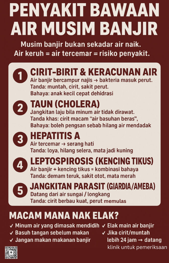 🌧️ PENYAKIT BAWAAN AIR MUSIM BANJIR – HATI-HATI!