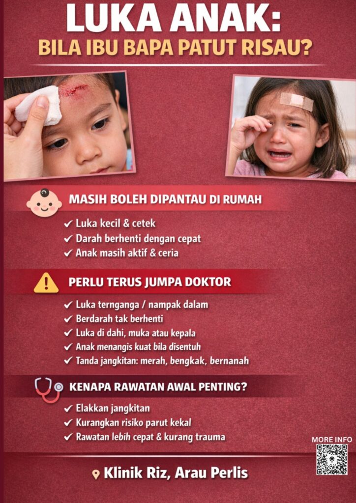 📌 Luka di dahi, muka atau kepala anak jangan dipandang ringan.