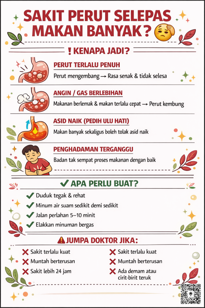 Selalunya ini berlaku bila kita makan terlalu cepat, terlalu banyak atau ambil makanan yang berat & berlemak. Sistem penghadaman jadi terpaksa bekerja lebih kuat daripada biasa.